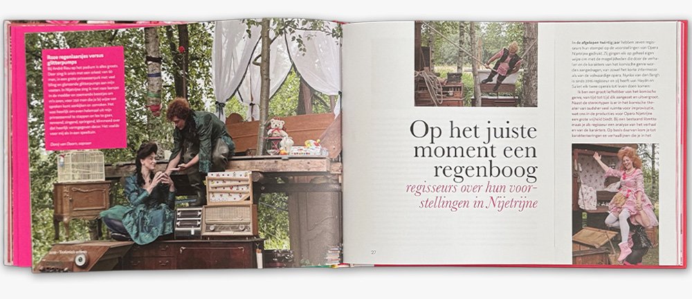 Dit fraai vormgegeven boek over 20 jaar komische opera uit de achttiende eeuw in natuurgebied De Rottige Meente, Friesland is samengesteld door Cees de Boer en Yvon Scheper. Michael Kolf (Mibook) tekende voor de vormgeving, het drukwerk en de begeleiding van de hele productie.